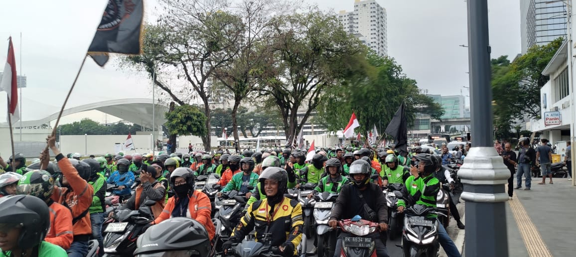 Selain itu, juga terlihat para jajaran manajemen aplikator juga ikut menemui massa.