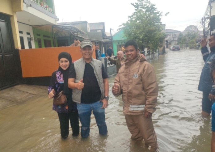 Anggota DPRD Kab Tangerang, Banten H.Muhamad Sobri terjun langsung ketempat banjir di Kadujaya, Kecamatan Curug.
